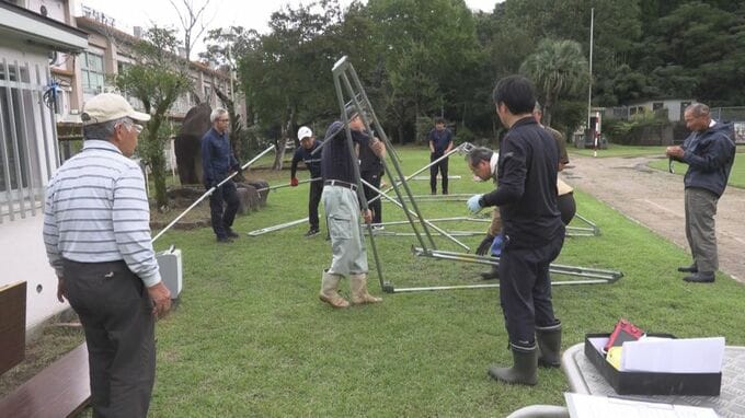 この日は、最後となる運動会の準備です。住民も一緒になってテントを設営し、校庭にたまった水を取り除いていました。