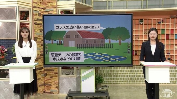 例えば、農場の周辺にカラスの巣があったり、池に鳥が飛来していたりする場合。こうした状況のときに農場を管理する人が、関係機関に連絡をしてカラスの追払いや巣の撤去、ため池にテープを設置するなど迅速な対応が可能になります。