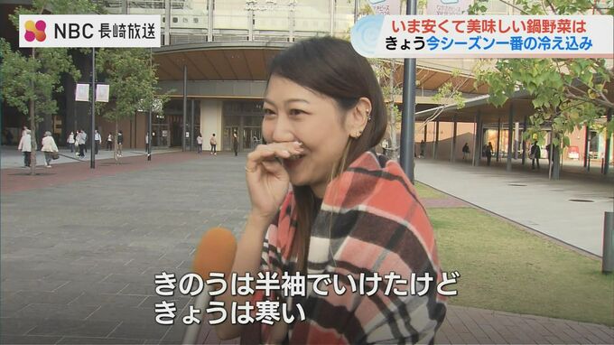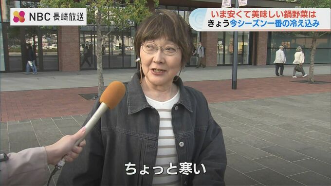 27日の長崎県内は寒気の影響で冷え込み、各地で今シーズンの最低気温を更新しました。気温が下がるのに合わせてそろそろ鍋の出番が増えるご家庭も多いのではないでしょうか。そこで、この時期に安くて美味しい鍋野菜を野菜のプロに聞いてきました。