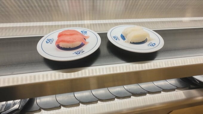 注文したネタは、従業員を介さず高速で届きます。もはや“究極の省人化”を実現しています。