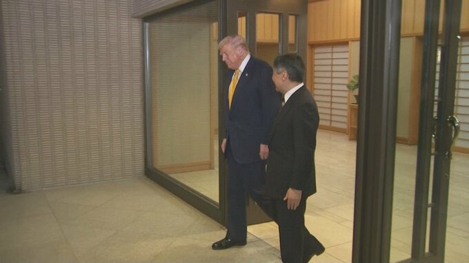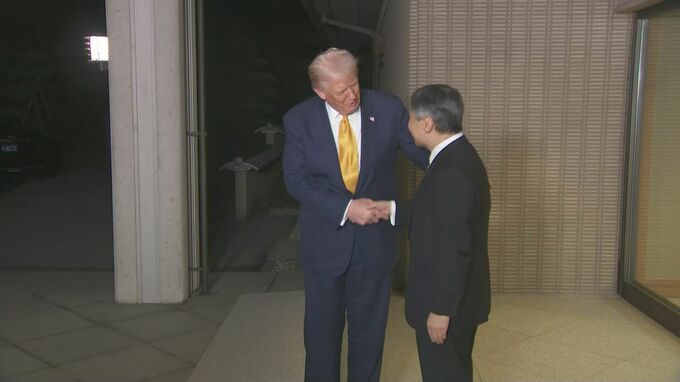 【写真で見るトランプ大統領来日】天皇陛下との写真撮影 大統領専用車「ビースト」の中で手を挙げ皇居を去るトランプ大統領 都内の大規模警備も TBSテレビ 2025年10月27日(月) 22:33 国内 天皇陛下と握手を交わし、皇居をあとにするトランプ大統領