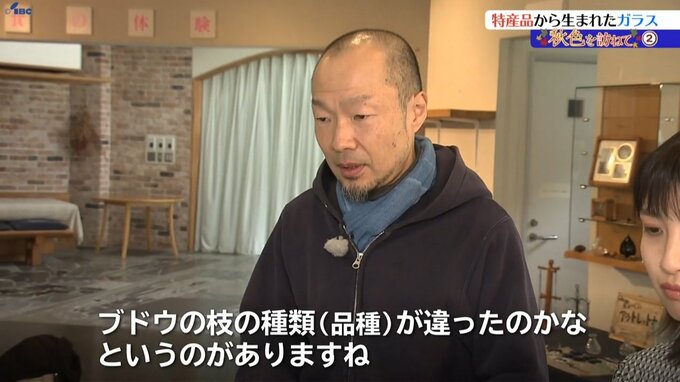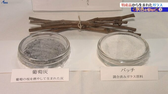 「このガラスの色の元となっているのが、大迫の特産であるぶどうの木の枝です」