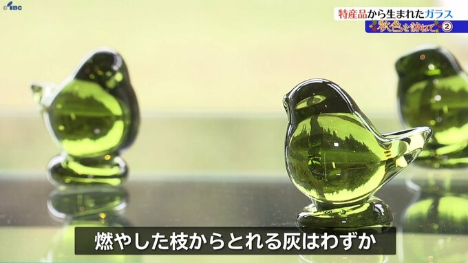 大迫町の自然が生んだ秋色は枝を灰にするまで燃やすのに丸一日かかる上、採れる灰の量はわずかなため、工房で作られるガラス製品も決して多くありません。