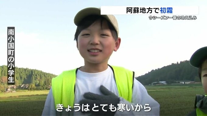 今日(28日)朝の熊本県内は、上空の寒気や放射冷却の影響で、各地で今シーズン一番の冷え込みとなり、阿蘇地方では霜が降りた所もありました。最低気温が3.3℃、と九州の観測点で最も低かった南小国町では、田ん…