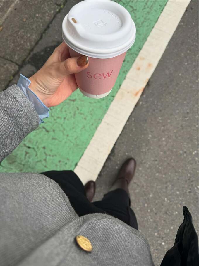 「早起きしたのでコーヒー飲みながら散歩しながら現場に行ったよ!子供が校庭で走り回ってる声聞いて癒されました」と綴り、コーヒーの入ったカップを手にした画像も投稿しています。