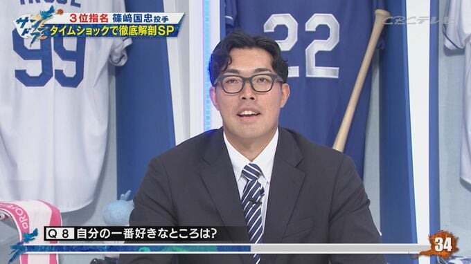 指名から数日経ってプロでやれる楽しみにワクワクしてきたという篠﨑投手。川上憲伸氏も若干20歳で120キロ台のカーブもあり緩急を使いこなせる器用さもあると高い評価を付けた。スタジオ生出演した篠﨑投手の素顔やその魅力に、リアルな言葉で答える一問一答で迫る。