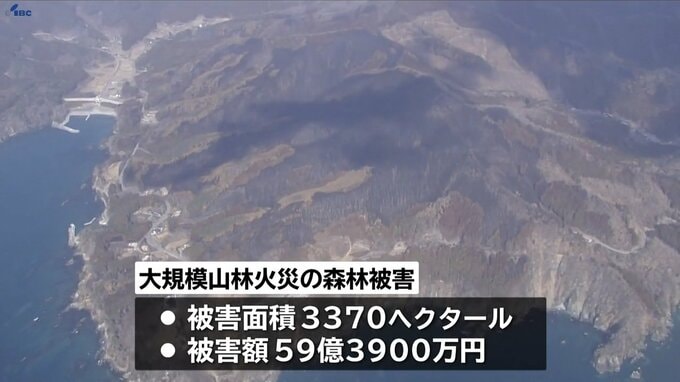 それによりますと被害面積は個人が所有する私有林と、大船渡市や県が所有する公有林合わせて3370ヘクタールで、被害額は59億3900万円に上りました。