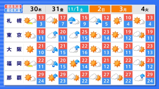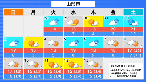 【早期天候情報】東北地方では「著しい高温」となる可能性 この時期としては "10年に一度" レベル 11月4日頃~かなりの高温に 5日間平均気温平年差+2.2℃以上 気象庁 テレビユー山形 2025年10月28日(火) 15:00 国内 ■東北・全国の天気 画像はTBS NEWS DIG Powered by JNNより 画像ありの記事を最初から https://newsdig.tbs.co.jp/articles/-/2253661?display=1
