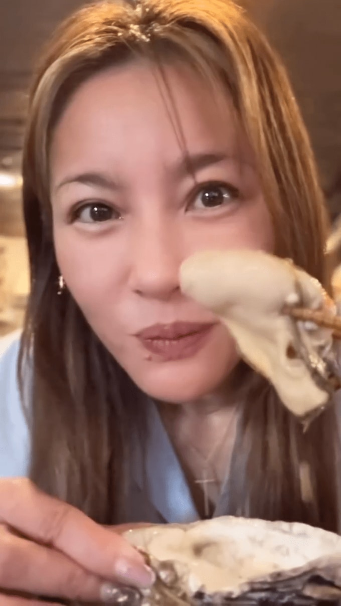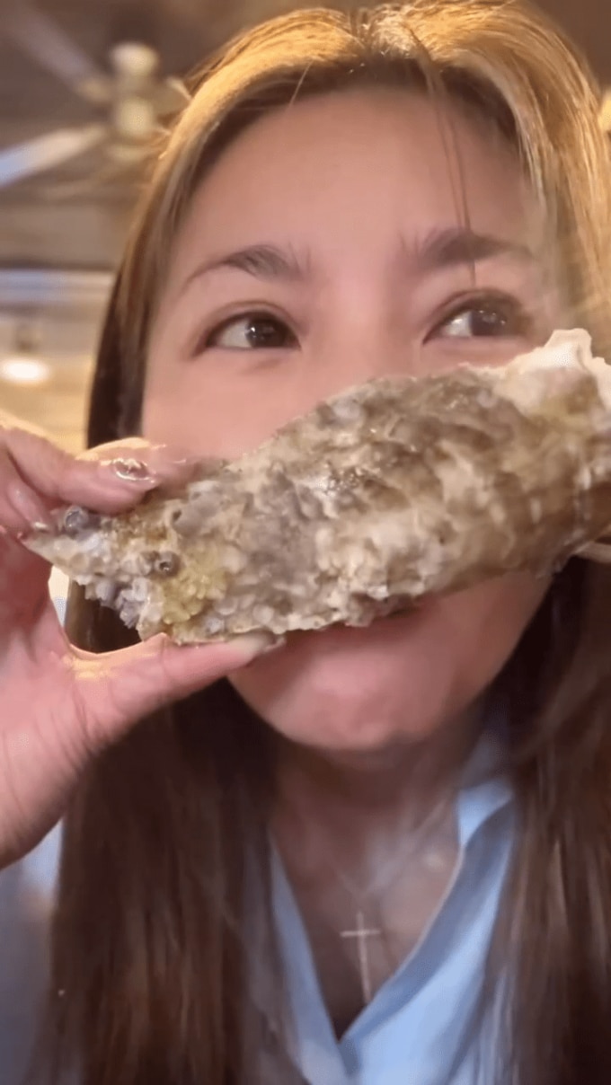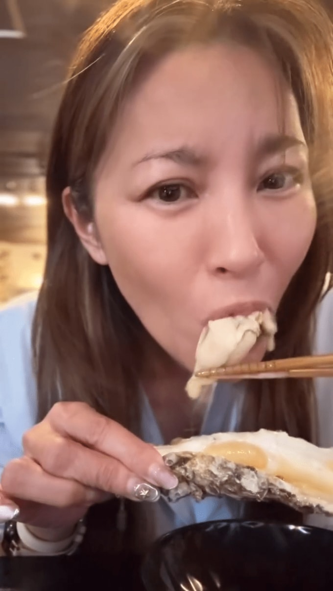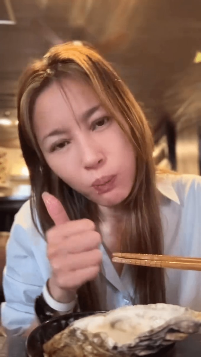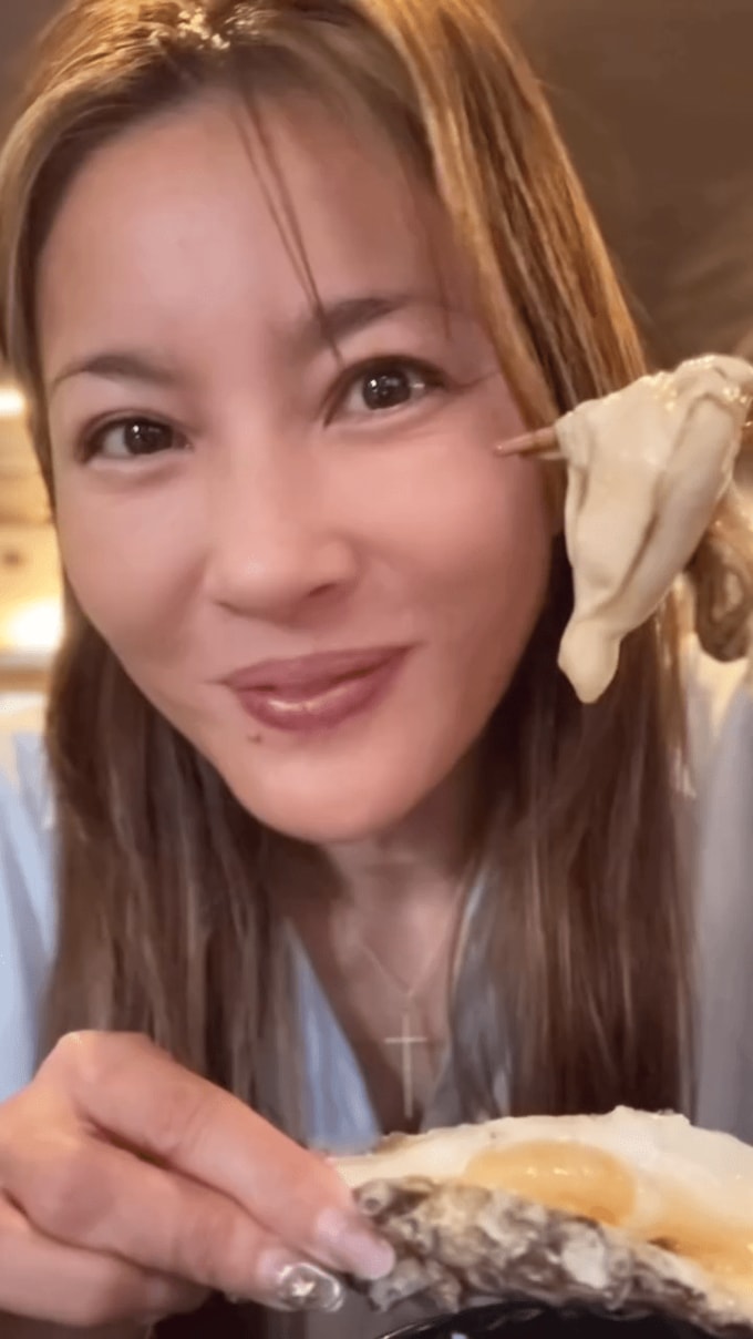 そして、「生牡蠣 またまたいただきました 美味すぎーーーーっ♡ 感謝です」と、動画では「大きすぎて、美味しすぎる!」と、大ぶりな生牡蠣を一口でペロリと平らげ、続けざまにもう一つも一口でパクリと頬張り、満面の笑みでカメラにサムズアップし大満足の様子でした。