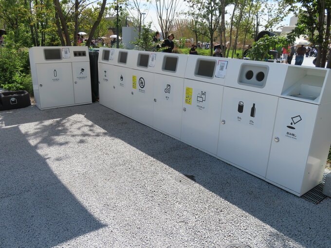 また、廃棄物の発生を抑制するリデュースや、再利用可能な部材を活用するリユースとリサイクルも進めた。会場内で使われた食器は回収してリユースしたほか、ごみについては再資源化するリサイクルにつなげるため、もやすごみからペットボトルのキャップまで、9項目にもわたる分別回収を行なっていた。