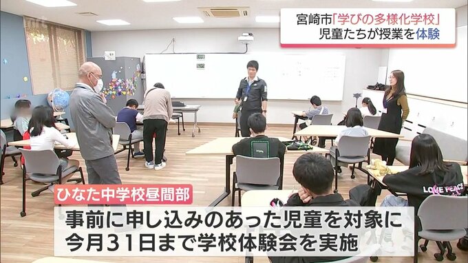 今年4月、不登校の中学生を対象に宮崎市に開校した「学びの多様化学校」で学校体験会が開かれました。「学びの多様化学校」は、不登校の児童生徒に配慮した、特別な教育課程を編成できる学校で、宮崎市の「ひなた…