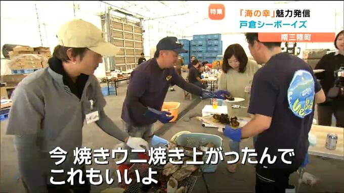 「今、焼きウニ焼きあがったんで。これもいいよ。でもよかったです、褒められて」