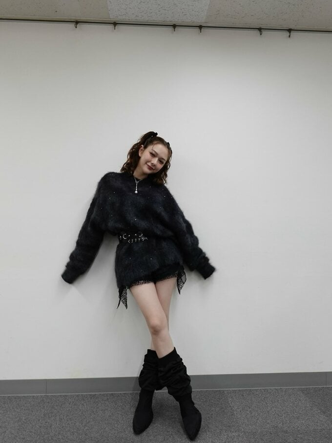 村重さんは「春頃写真集出す事になりました!村重です そして今日は特別ギャルDAY!!! やっぱしっくりくるね!!ギャル懐かしい」と黒のホットパンツのセットアップに白ブーツで椅子に座り、太ももを露わなセクシーショットを披露しました。