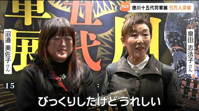 「徳川十五代将軍展の入場者数がただいま5万人を突破しました」