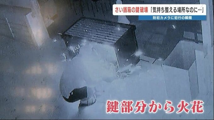 神社のさい銭箱の鍵を工具で壊している男の姿を、防犯カメラが捉えていました。10月16日午後9時半ごろ、熊本県阿蘇市にある「赤水蛇石神社」に現れた帽子にマスク姿の男が、さい銭箱の裏側に回りました。さい銭箱…