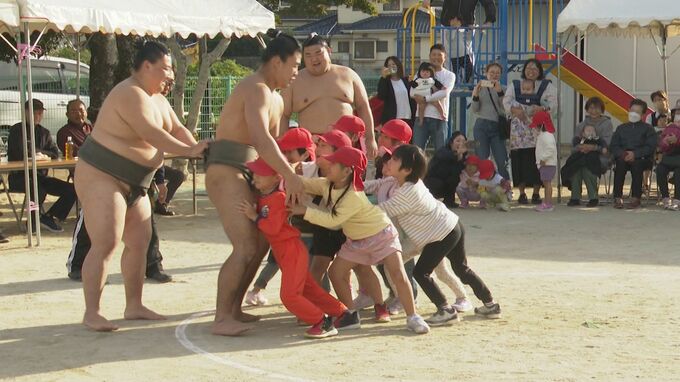 園児たちは自分の何倍も大きな体の力士に果敢に挑んでいました。