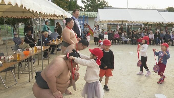 元大関・琴欧洲の鳴戸親方と若手力士たちが、熊本県山鹿市の園児たちと交流会を開きました。