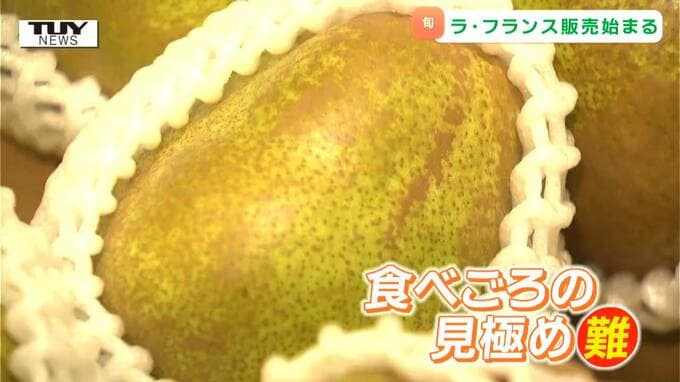 ラ・フランスは食べごろの見極めが難しい果物です。収穫してすぐは固く、食べごろになっても果実の色が変わらないことからそのおいしさに気が付くことができない消費者もいるということです。