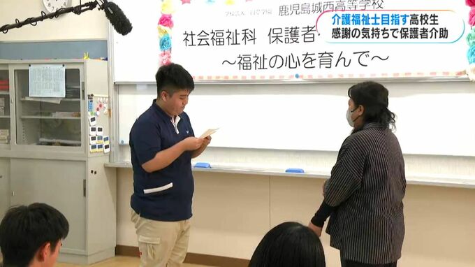 介護や福祉について学ぶ高校生が、保護者をモデルに介護の実技を披露しました。