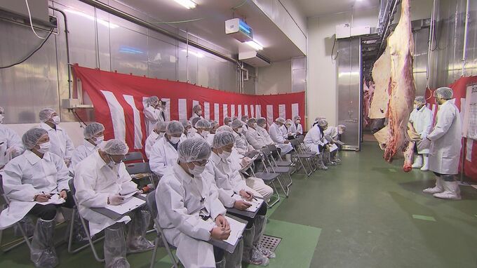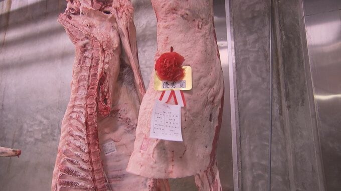 肉用牛の質を競う「県畜産共進会」が南城市で28日開かれ、県内選りすぐりの枝肉が一堂に集まりました。