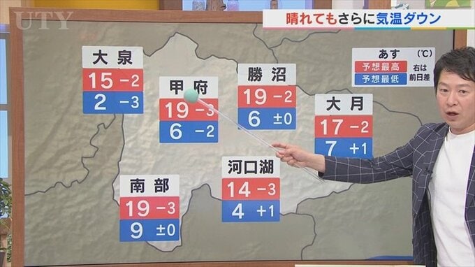 米津龍一気象予報士:あすのお天気ポイントはこちらです。晴れてもややヒンヤリしそうです。きょうより気温が下がりそうです。