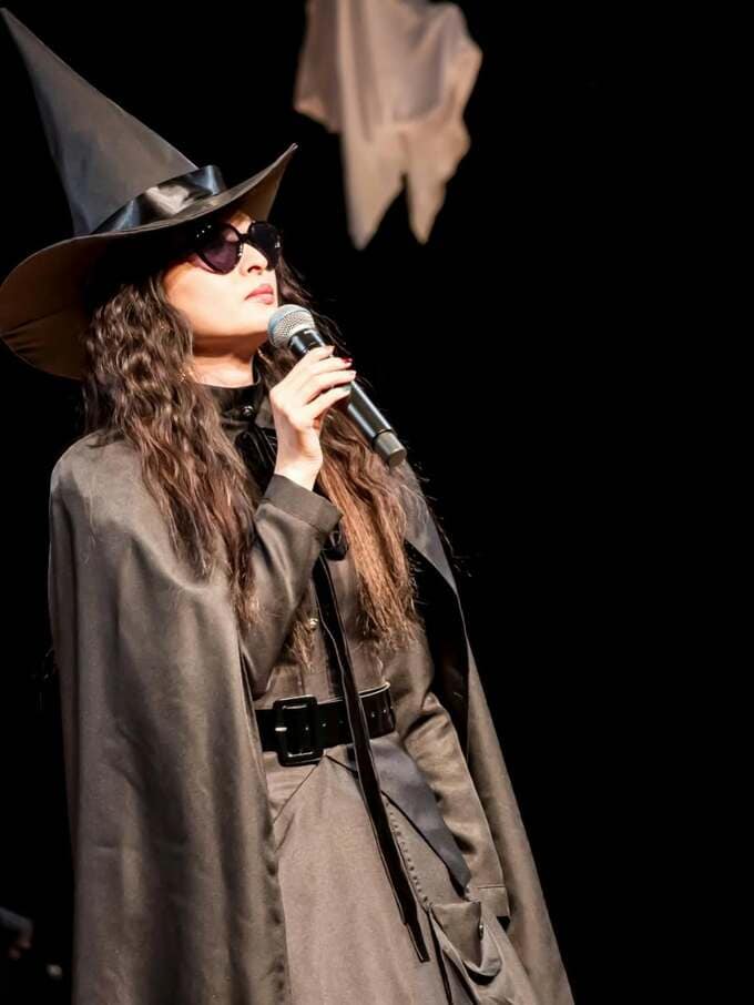島袋さんのコスプレは、黒のとんがり帽子に、黒のマント、黒のワンピースの全身黒づくめの魔女のコスプレ。
