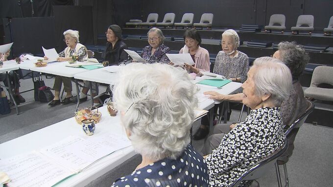 多くの困難を乗り越えてきた俊子さんの人生を、今も支えているものは「歌」。月に2回、沖縄師範学校女子部と沖縄県立第一高等女学校を卒業した「ひめゆり同窓生」の元学友たちとのコーラスが、何よりの楽しみだ。メンバーは90代半ばを過ぎた今も、集まって歌声を響かせている。