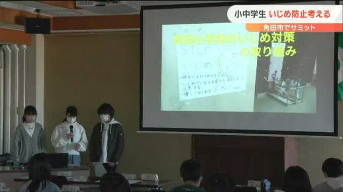 宮城県角田市内の小中学生が集いいじめ防止について考える「サミット」が8日、開かれ、各学校での取り組みが発表されました。角田市役所で開かれた「いじめ防止小・中学生サミット」には市内8つの小中学校の児童、…