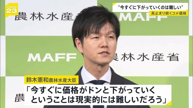 高止まりが続いてるコメの価格について、鈴木農林水産大臣は「今すぐに価格がドンと下がっていくということは現実的には難しいだろう」と、今すぐの値下がりは難しいという認識を示しました。また、物価高対策とし…