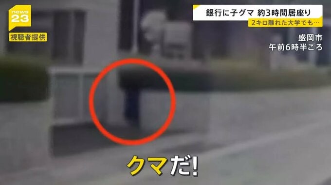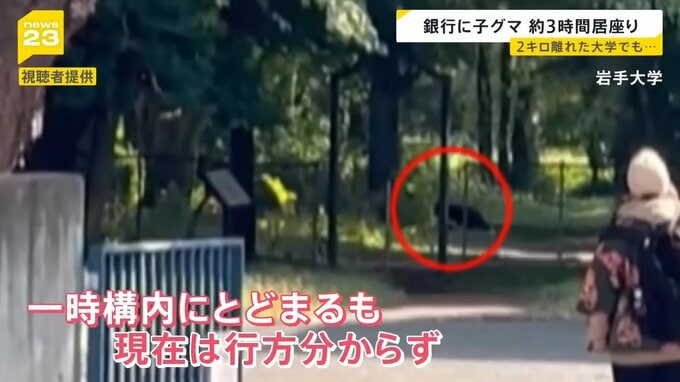 ただその直後、新たなクマ出没の通報が…。子グマが侵入した岩手銀行から直線でおよそ2キロ離れた岩手大学。警察や大学によると、28日正午ごろ、大学構内で学生がおよそ1メートルのクマ1頭を目撃。警察に通報しました。