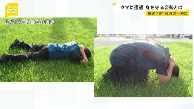 この姿勢は、秋田大学大学院などの研究チームが実際にクマに襲われた人のデータを調べ、発表したもので、2023年度の秋田県のクマ被害データを調べたところ、被害者70人中、23人が重症者でした。