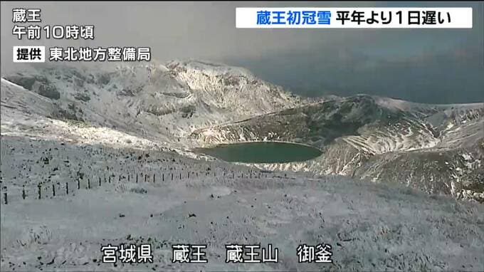 仙台管区気象台は、29日午前、蔵王の初冠雪を観測しました。平年より1日遅い観測です。