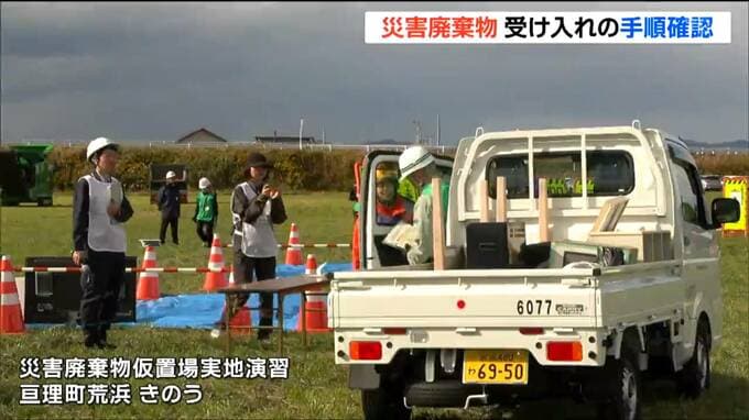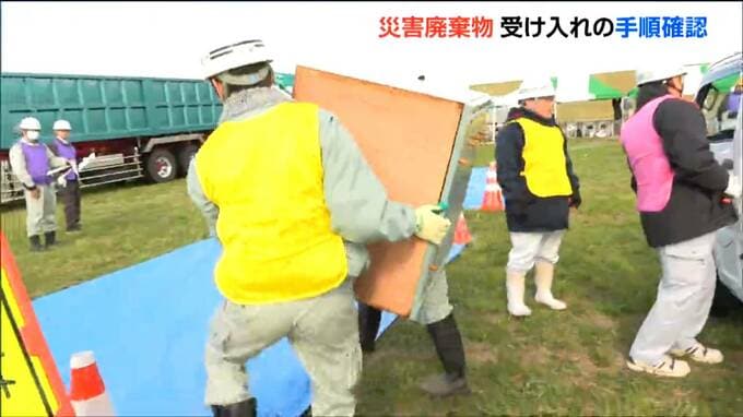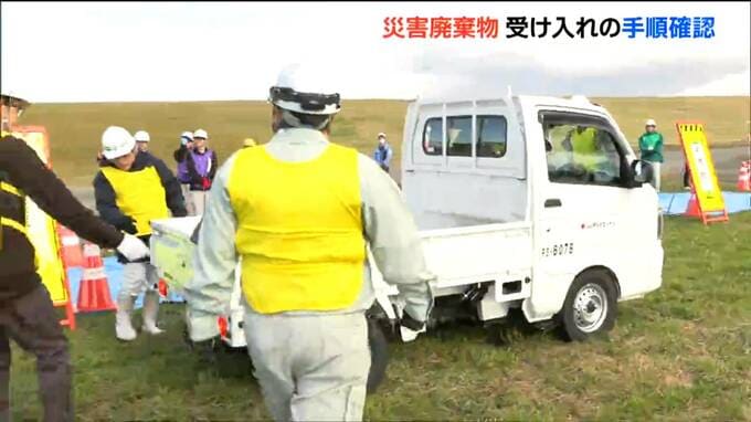 災害廃棄物の受け入れを想定した研修会が、28日に宮城県亘理町で行われ、職員らが、仮置き場を設置する手順を確認しました。