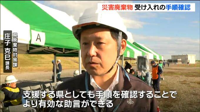 罹災証明書を確認するなど、職員は、仮置き場を運営するための手順を確認していました。