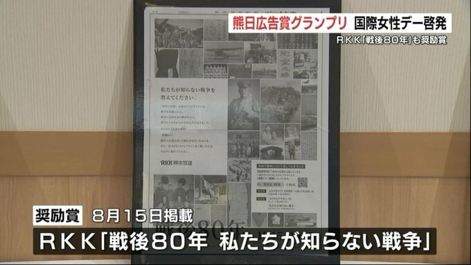 また、RKK熊本放送の「戦後80年 私たちが知らない戦争」のメッセージ広告は、奨励賞に選ばれました。