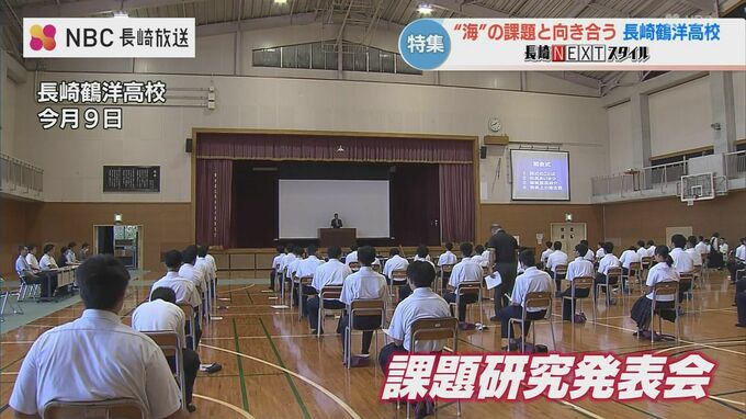 ことし10月、長崎鶴洋高校で行われた発表会。今年度、長崎鶴洋高校水産科の3年生は4班に分かれ、現場が抱える具体的な問題に実証的なアプローチを行う「課題研究」に取り組んだ。