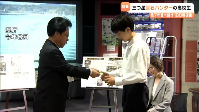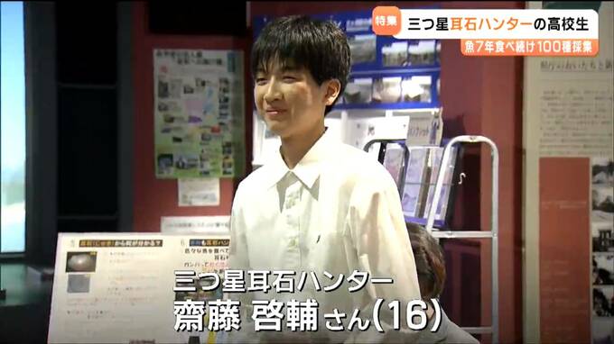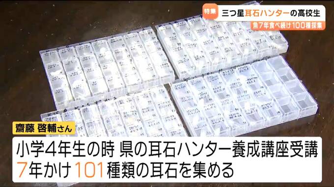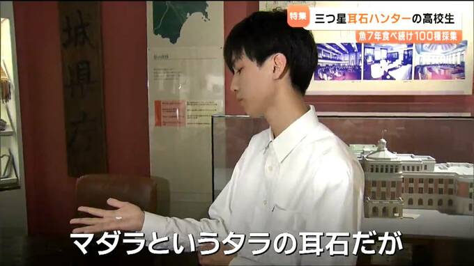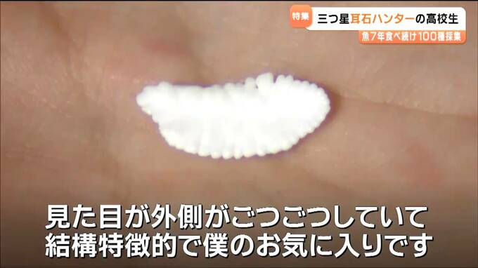 7年間魚を食べ続け100種類の耳石を集めたとして、最高位の三つ星になった高校生の耳石採集に密着しました。