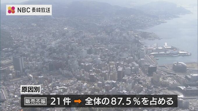 倒産の原因別では「販売不振」が21件と、全体の87.5%を占めました。