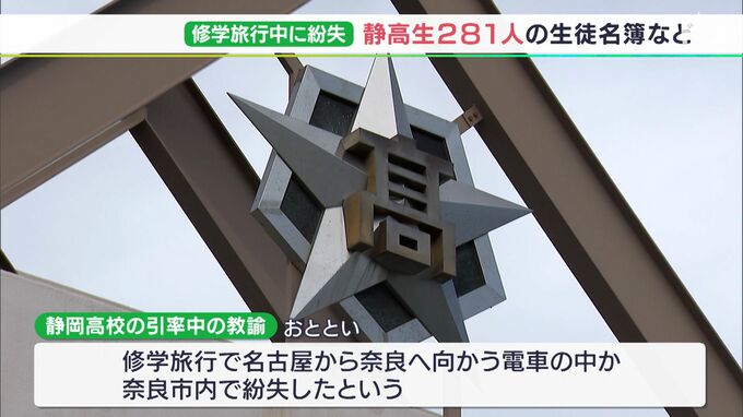 静岡県立静岡高校の教諭が、修学旅行の引率中に、生徒281人分の個人情報が書かれた名簿などを紛失したことが分かりました。静岡県教委によりますと、静岡高校の教諭が引率中に紛失したのは、修学旅行に参加している…
