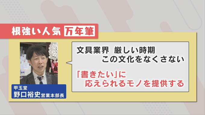 一方で、万年筆も根強い人気です。老舗の文具店「甲玉堂」は100年以上、オリジナルの万年筆を作り続けています。