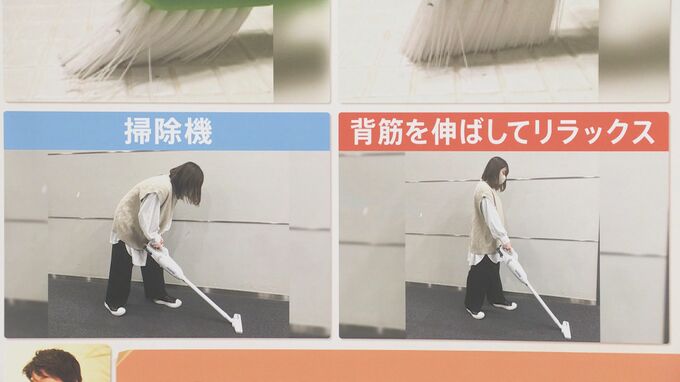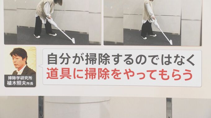そして掃除機も、みなさん、間違って使っていないですか?床にぐぐっと押し付ける。私もやっちゃうんですけど、正しいフォームは「背筋を伸ばしてリラックス」。使い方としては掃除機で吸い取ってるなという力を感じ取れるくらいの力加減がおすすめということでした。