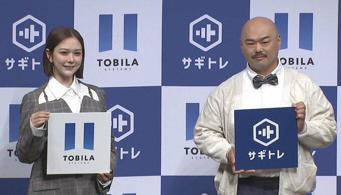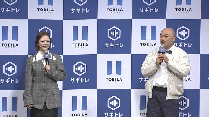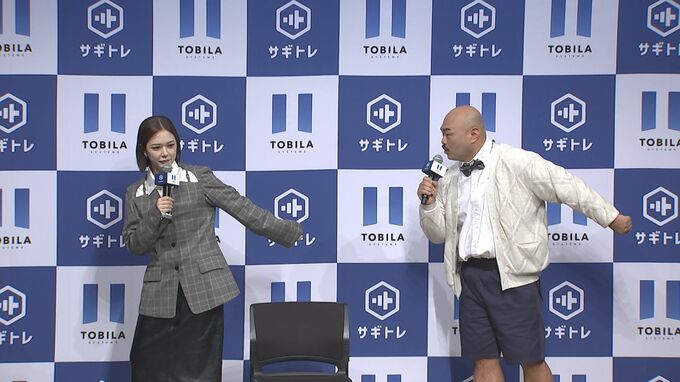 タレントの村重杏奈さんと、安田大サーカスのクロちゃんが29日、都内で開催された法人向け詐欺メール・SNS訓練サービス「サギトレ」発売発表会に登壇。