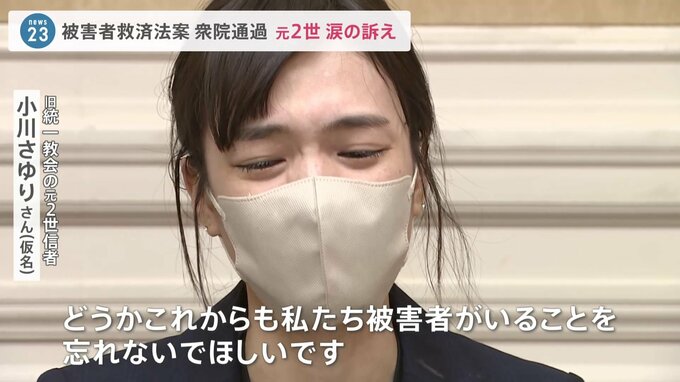 旧統一教会などの被害者を救済する新法案が衆議院を通過し参議院に送られました。「残る課題を忘れず議論を続けてほしい」これまで規制や法整備を求め続けてきた元2世信者が涙ながらに訴えました。旧統一教会の2世…