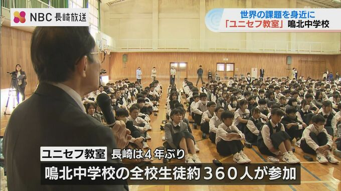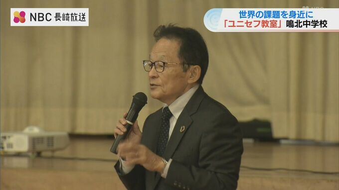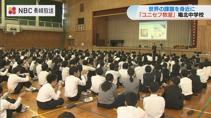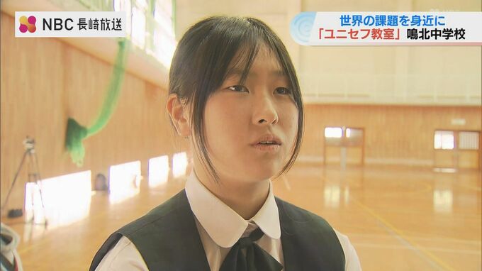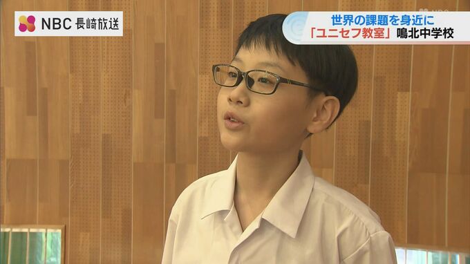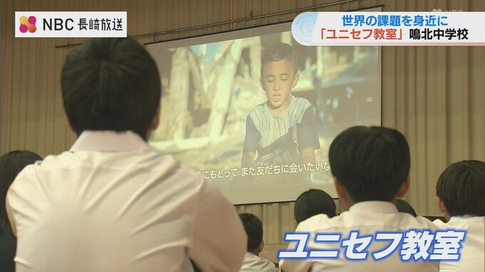 紛争や気候変動など世界の子どもが抱える課題について身近に考えてもらおうと、「ユニセフ」の国内団体による特別教室が10月29日、長崎県時津町の中学校で開かれました。