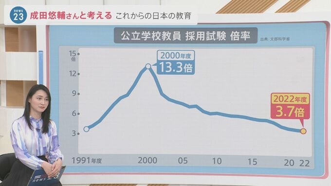公立学校の教員採用試験の倍率が2000年をピークに減少傾向となっています。2022年度の採用選考は3.7倍、過去最低になりました。この状況をどう解決したらよいのでしょうか?