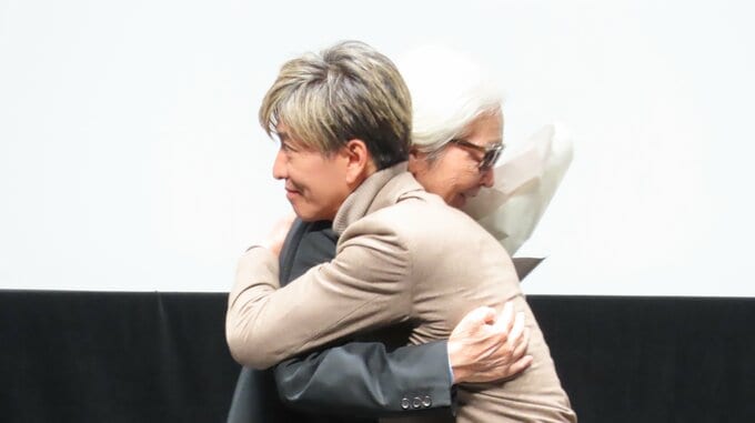 今回山田組に参加し、木村さんは‟監督が今、目の前で「功労賞」というものをいただいてはいましたが、「TOKYOタクシー」も「パリタクシー」というヨーロッパの作品を観て、「これを東京版でリメイクしたいな」ってところから話がスタートしたと聞いて、いろんなところに自分の興味を常にお持ちになられている。いろんな興味があるからこそ現役なんだなって。トロフィーを貰う監督の斜め後ろから考えていました。こういう先輩がいると、もう一回やる気が出ますよね。今回の「TOKYOタクシー」を観ていただいた後に、現役でいられる力を皆さんに持ってもらえるんじゃないかなと思いました”と山田監督の凄さを熱弁。横で木村さんの話を聞いていた山田監督は「ありがとう、木村君」と感謝の言葉を贈りました。