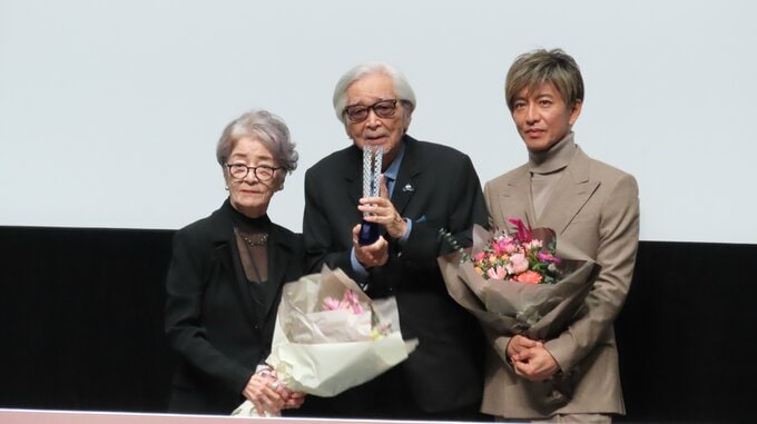 歌手で俳優の木村拓哉さんが、俳優の倍賞千恵子さん、山田洋次監督とともに映画『TOKYOタクシー』の第38回東京国際映画祭<センターピース上映>に登場しました。