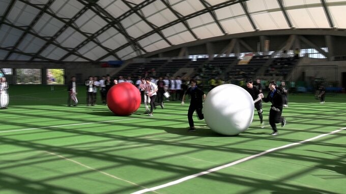 岡山市北区の岡山ドームで行われた「企業対抗大運動会」には、倉敷市内で不動産業や住宅建設業を営むあわせて5社が参加しました。競技を通じて社員の一体感の向上と地域企業の連携を深めようと初めて開催されたものです。参加した約120人は、それぞれの会社のTシャツを身に着け、玉入れや綱引きなどの競技に挑みました。