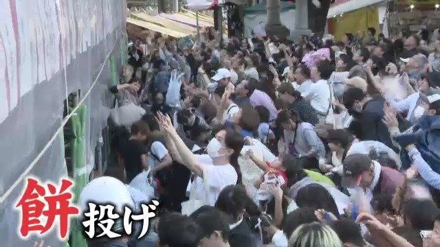 ほんの5分でまかれた餅の数は、なんと9000個!