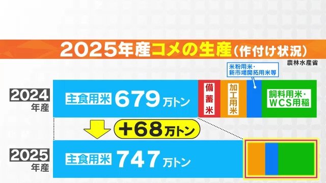 長年続いた米の生産調整を見直し、増産に舵をきった国。しかし、耕作面積をすぐには増やせないため、今年は主食用米の作付を増やし、もち米などの加工用米は生産量が減ることに。